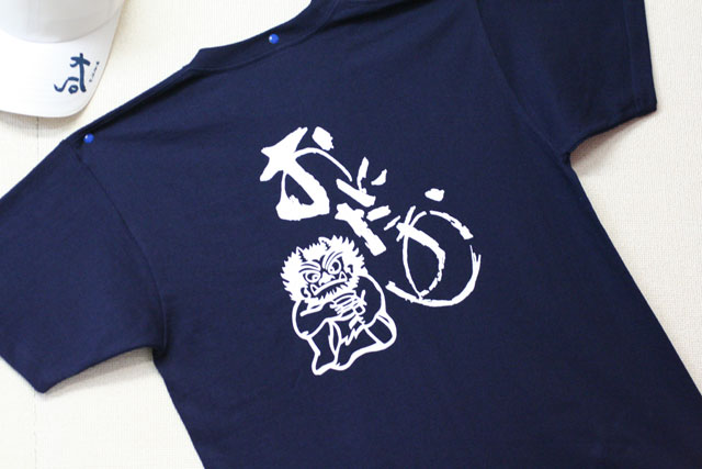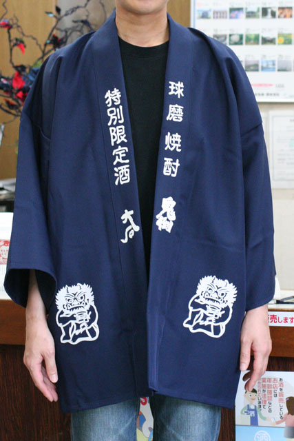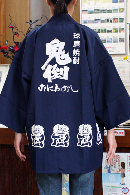鬼倒のロゴを配したハンテンです。前には鬼倒と大石のロゴを配しています。