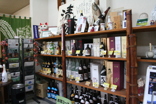 大石酒造場本社奥横には、当社全製品を取りそろえた直営ショップを併設しております。蔵見学の記念に、親しい方へのお土産にいかがでしょうか。